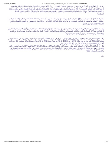 9/26/25, 4:24 PM ﺔﯾﺗارﺎﻣإ ﺔﻛرﺎﺷﻣﺑ وﺷﺗﻐﻧﺎھ ﻲﻓ ﺔﯾﻣﻗرﻟا ةرﺎﺟﺗﻠﻟ ﻲﻣﻟﺎﻌﻟا ضرﻌﻣﻟا تﺎﯾﻟﺎﻌﻓ قﻼطﻧا - Fana News
