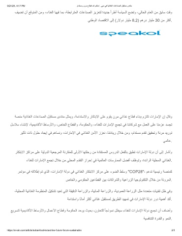 ﺔﺻﻧﻣ ﺔﯾﺋاذﻐﻟا تﺎﻋﺎﻧﺻﻟا لﺑﻘﺗﺳﻣ ىدﺗﻧﻣ لﺛﻣﯾو ،ﺔﻣادﺗﺳﻻاو رﺎﻛﺗﺑﻻا ﻰﻠﻋ موﻘﯾ نرﻣ ﻲﺋاذﻏ عﺎطﻗ ءﺎﻧﺑﺑ مزﺗﻠﺗ تارﺎﻣﻹا نإ لﺎﻗو