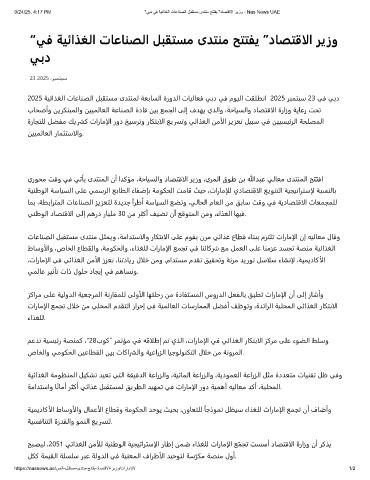 9/24/25, 4:17 PM "ﻲﺑد ﻲﻓ ﺔﯾﺋاذﻐﻟا تﺎﻋﺎﻧﺻﻟا لﺑﻘﺗﺳﻣ ىدﺗﻧﻣ ﺢﺗﺗﻔﯾ "دﺎﺻﺗﻗﻻا رﯾزو - Nas News UAE