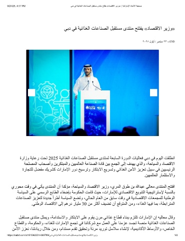 9/24/25, 4:17 PM ﻲﺑد ﻲﻓ ﺔﯾﺋاذﻐﻟا تﺎﻋﺎﻧﺻﻟا لﺑﻘﺗﺳﻣ ىدﺗﻧﻣ ﺢﺗﺗﻔﯾ «دﺎﺻﺗﻗﻻا رﯾزو» | ﺔﯾﺗارﺎﻣﻹا دﺎﺣﺗﻻا ﺔﻔﯾﺣﺻ