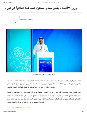 9/24/25, 4:18 PM "ﻲﺑد ﻲﻓ ﺔﯾﺋاذﻐﻟا تﺎﻋﺎﻧﺻﻟا لﺑﻘﺗﺳﻣ ىدﺗﻧﻣ ﺢﺗﺗﻔﯾ "دﺎﺻﺗﻗﻻا رﯾزو