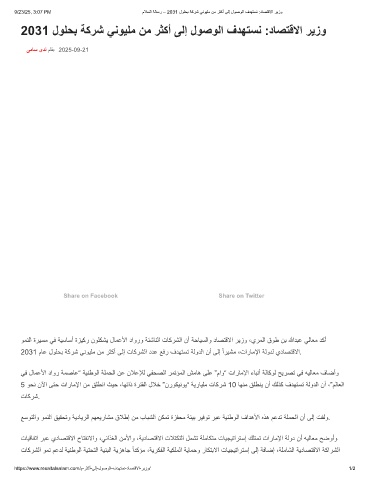 2031 مﺎﻋ لوﻠﺣﺑ ﺔﻛرﺷ ﻲﻧوﯾﻠﻣ نﻣ رﺛﻛأ ﻰﻟإ تﺎﻛرﺷﻟا ددﻋ ﻊﻓر فدﮭﺗﺳﺗ ﺔﻟودﻟا نأ ﻰﻟإ ًارﯾﺷﻣ ،تارﺎﻣﻹا ﺔﻟودﻟ يدﺎﺻﺗﻗﻻا.