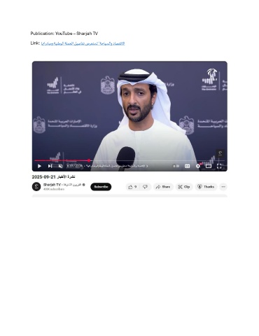 Publication: YouTube – Sharjah TV Link: اهتاردابمو ةينطولا ةلمحلا ليصافت ضرعتست "ةحايسلاو داصتقلاا