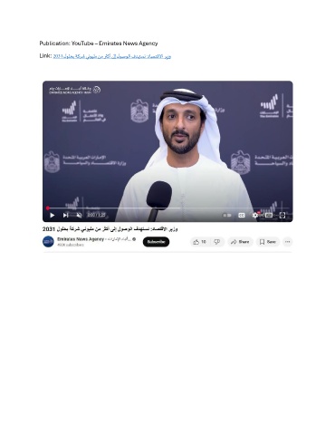 Publication: YouTube – Emirates News Agency Link: 2031 لولحب ةكرش ينويلم نم رثكأ ىلإ لوصولا فدهتسن :داصتقلاا ريزو