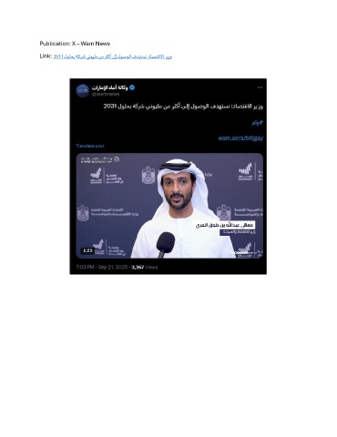 Publication: X – Wam News Link: 2031 لولحب ةكرش ينويلم نم رثكأ ىلإ لوصولا فدهتسن :داصتقلاا ريزو