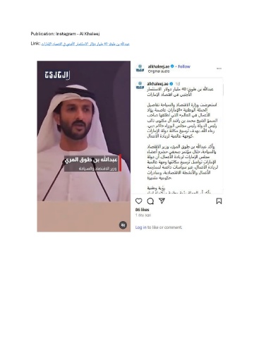 Publication: Instagram - Al Khaleej Link: تاراملإا داصتقا يف يبنجلأا رامثتسلاا رلاود رايلم 40 :قوط نب اللهدبع