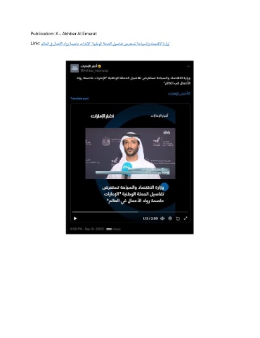 Publication: X – Akhbar Al Emarat Link: ملاعلا يف لامعلأا داور ةمصاع تاراملإا" ةينطولا ةلمحلا ليصافت ضرعتست ةحايسلاو داصتقلاا ةرازو"
