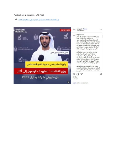 Publication: Instagram – UAE Post Link: 2031 لولحب ةكرش ينويلم نم رثكأ ىلإ لوصولا فدهتسن :داصتقلاا ريزو