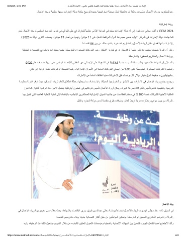مﺎﻌﻟ لﺎﻣﻋﻷا ةدﺎﯾرﻟ ﻲﻣﻟﺎﻌﻟا دﺻرﻣﻟا رﯾرﻘﺗ ﻲﻓ ﻲﻟاوﺗﻟا ﻰﻠﻋ ﻊﺑارﻟا مﺎﻌﻠﻟ ً ﺎﯾﻣﻟﺎﻋ ﻰﻟوﻷا ﺔﺑﺗرﻣﻟا ﻲﻓ تﻠﺣ تارﺎﻣﻹا ﺔﻟود نأ ﻰﻟإ قوط نﺑا ﻲﻟﺎﻌﻣ رﺎﺷأ « GEM 2024