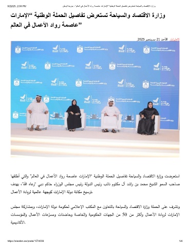 9/22/25, 2:04 PM نطوﻟا ةدﯾرﺟ › ”مﻟﺎﻌﻟا ﻲﻓ لﺎﻣﻋﻷا داور ﺔﻣﺻﺎﻋ تارﺎﻣﻹا“ ﺔﯾﻧطوﻟا ﺔﻠﻣﺣﻟا لﯾﺻﺎﻔﺗ ضرﻌﺗﺳﺗ ﺔﺣﺎﯾﺳﻟاو دﺎﺻﺗﻗﻻا ةرازو