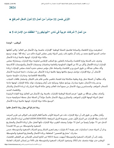 مﺎﻌﻟ لﺎﻤﻋألا ةدﺎﻳﺮﻟ ﻲﻤﻟﺎﻌﻟا ((GEM 2024/2025، ﺔﻌﻔﺗﺮﻤﻟا لوﺪﻟا ﺔﻋﻮﻤﺠﻣ ﻦﻤﺿ ،لوألا ﺰﻛﺮﻤﻟا ﻲﻓ تارﺎﻣإلا ﺔﻟود تءﺎﺟ ﺎﻤﻛ