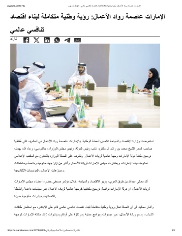 9/22/25, 2:06 PM زوﯾﻧ تارﺎﻣﻹا - ﻲﻣﻟﺎﻋ ﻲﺳﻓﺎﻧﺗ دﺎﺻﺗﻗا ءﺎﻧﺑﻟ ﺔﻠﻣﺎﻛﺗﻣ ﺔﯾﻧطو ﺔﯾؤر :لﺎﻣﻋﻷا داور ﺔﻣﺻﺎﻋ تارﺎﻣﻹا