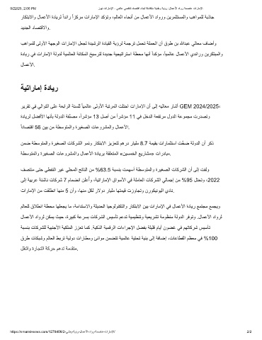 رﯾرﻘﺗ ﻲﻓ ﻲﻟاوﺗﻟا ﻰﻠﻋ ﺔﻌﺑارﻟا ﺔﻧﺳﻠﻟ ً ﺎﯾﻣﻟﺎﻋ ﻰﻟوﻷا ﺔﺑﺗرﻣﻟا تﻠﺗﺣا تارﺎﻣﻹا نأ ﻰﻟإ ﮫﯾﻟﺎﻌﻣ رﺎﺷأ GEM 2024/2025،