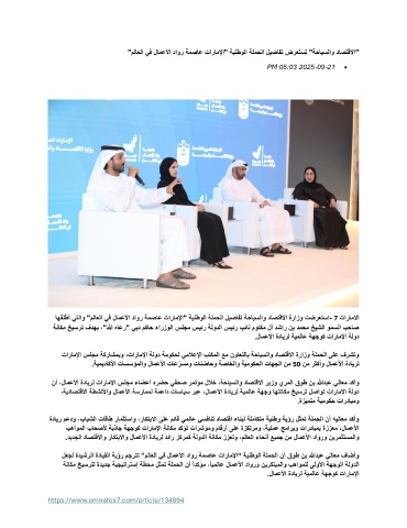 اهقلطأ يتلاو "ملاعلا يف لامعلأا داور ةمصاع تاراملإا" ةينطولا ةلمحلا ليصافت ةحايسلاو داصتقلاا ةرازو تضرعتسا 7 - تاراملاا