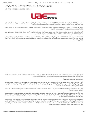 9/22/25, 2:09 PM UAE News - مﻟﺎﻌﻟا ﻲﻓ لﺎﻣﻋﻷا داور ﺔﻣﺻﺎﻋ تارﺎﻣﻹا" ﺔﯾﻧطوﻟا ﺔﻠﻣﺣﻟا لﯾﺻﺎﻔﺗ ضرﻌﺗﺳﯾ قوط نﺑ - تارﺎﻣﻹا رﺎﺑﺧأ"