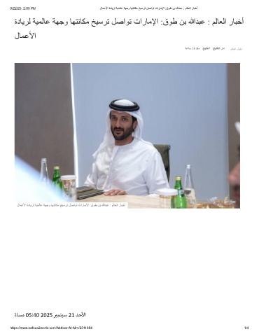 9/22/25, 2:09 PM لﺎﻣﻋﻷا ةدﺎﯾرﻟ ﺔﯾﻣﻟﺎﻋ ﺔﮭﺟو ﺎﮭﺗﻧﺎﻛﻣ ﺦﯾﺳرﺗ لﺻاوﺗ تارﺎﻣﻹا :قوط نﺑ ﷲدﺑﻋ : مﻟﺎﻌﻟا رﺎﺑﺧأ