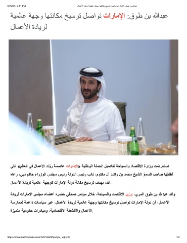 9/22/25, 2:11 PM لﺎﻣﻋﻷا ةدﺎﯾرﻟ ﺔﯾﻣﻟﺎﻋ ﺔﮭﺟو ﺎﮭﺗﻧﺎﻛﻣ ﺦﯾﺳرﺗ لﺻاوﺗ تارﺎﻣﻹا :قوط نﺑ ﷲدﺑﻋ