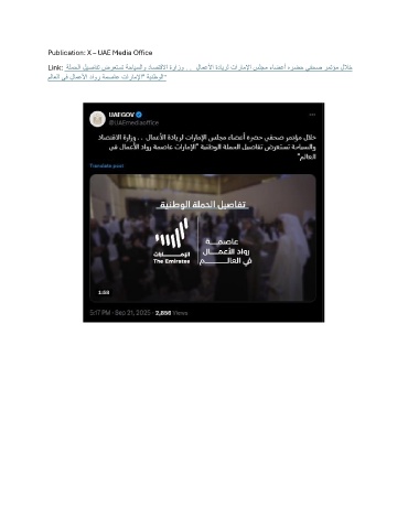 Publication: X – UAE Media Office Link: ةلمحلا ليصافت ضرعتست ةحايسلاو داصتقلاا ةرازو . . لامعلأا ةدايرل تاراملإا سلجم ءاضعأ هرضح يفحص رمتؤم للاخ ملاعلا يف لامعلأا داور ةمصاع تاراملإا" ةينطولا"
