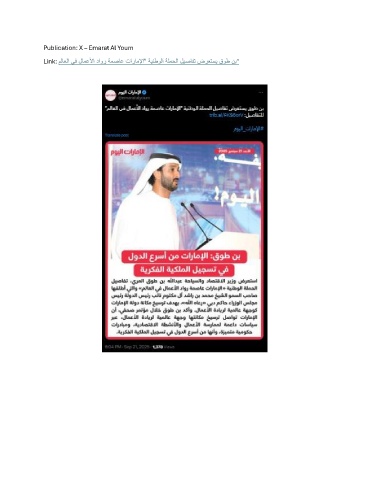 Publication: X – Emarat Al Youm Link: ملاعلا يف لامعلأا داور ةمصاع تاراملإا" ةينطولا ةلمحلا ليصافت ضرعتسي قوط نب"
