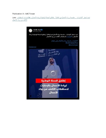Publication: X – UAE Forsan Link: باطقتسلا تاراملإا# ـب لامعلأا ةدايرل ةينطولا ةلمحلا قلاطإ .."ملاعلا يف لامعلأا داور ةمصاع .. تاراملإا" راعش تحت لامعلأا داور نم فلالآا