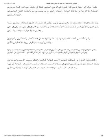 9/23/25, 4:18 PM «ﺔﺣﺎﯾﺳﻠﻟ نﯾﺻﻟا ﺔﻋوﻣﺟﻣ ﻊﻣ نوﺎﻌﺗﻟا صرﻓ ثﺣﺑﺗ «ﺔﺣﺎﯾﺳﻟاو دﺎﺻﺗﻗﻻا