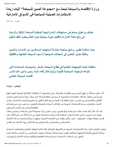 9/23/25, 4:18 PM ﺔﯾﺗارﺎﻣﻹا قاوﺳﻷا ﻲﻓ ﺔﯾﺣﺎﯾﺳﻟا ﺔﯾﻧﯾﺻﻟا تارﺎﻣﺛﺗﺳﻻا ةدﺎﯾز تﺎﯾﻟآ "ﺔﺣﺎﯾﺳﻠﻟ نﯾﺻﻟا ﺔﻋوﻣﺟﻣ" ﻊﻣ ثﺣﺑﺗ ﺔﺣﺎﯾﺳﻟاو دﺎﺻﺗﻗﻻا ةرازو