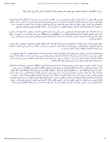 9/23/25, 4:22 PM ﺔﯾﺗارﺎﻣﻹا قاوﺳﻷا ﻲﻓ تارﺎﻣﺛﺗﺳﻻا ةدﺎﯾز ﺔﯾﻧﯾﺻ ﺔﻋوﻣﺟﻣ ﻊﻣ ثﺣﺑﺗ ﺔﺣﺎﯾﺳﻟاو دﺎﺻﺗﻗﻻا ةرازو - Fana News