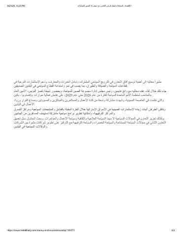 9/23/25, 4:23 PM «ﺔﺣﺎﯾﺳﻠﻟ نﯾﺻﻟا ﺔﻋوﻣﺟﻣ ﻊﻣ نوﺎﻌﺗﻟا صرﻓ ثﺣﺑﺗ «ﺔﺣﺎﯾﺳﻟاو دﺎﺻﺗﻗﻻا