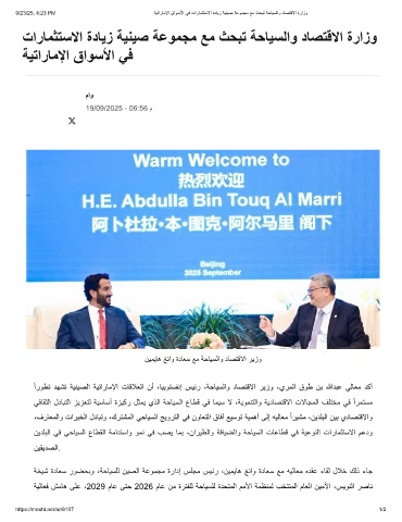 9/23/25, 4:23 PM ﺔﯾﺗارﺎﻣﻹا قاوﺳﻷا ﻲﻓ تارﺎﻣﺛﺗﺳﻻا ةدﺎﯾز ﺔﯾﻧﯾﺻ ﺔﻋوﻣﺟﻣ ﻊﻣ ثﺣﺑﺗ ﺔﺣﺎﯾﺳﻟاو دﺎﺻﺗﻗﻻا ةرازو