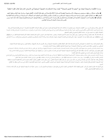 .لﺑﻘﻣﻟا دﻘﻌﻟا لوﻠﺣﺑ ﺔﯾﻗدﻧﻔﻟا تﺂﺷﻧﻣﻟا ﻲﻓ لﯾزﻧ نوﯾﻠﻣ 40 بﺎطﻘﺗﺳاو ،ﺔﻟودﻟا ﻲﻓ ﻲﺣﺎﯾﺳﻟا عﺎطﻘﻠﻟ مھرد رﺎﯾﻠﻣ 100 ﺔﻣﯾﻘﺑ ةدﯾدﺟ تارﺎﻣﺛﺗﺳا بذﺟو ،مھرد رﺎﯾﻠﻣ 450 ﻰﻟإ ﻲﻧطوﻟا دﺎﺻﺗﻗﻼﻟ ﻲﻟﺎﻣﺟﻹا