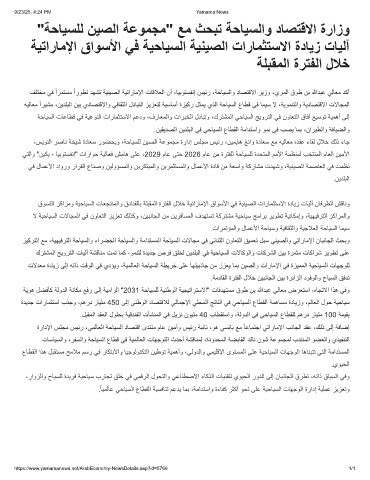 فﻠﺗﺧﻣ ﻲﻓ ًارﻣﺗﺳﻣ ًاروطﺗ دﮭﺷﺗ ﺔﯾﻧﯾﺻﻟا ﺔﯾﺗارﺎﻣﻹا تﺎﻗﻼﻌﻟا نأ ،ﺎﯾﺑوﺗﺳﻔﻧإ سﯾﺋر ،ﺔﺣﺎﯾﺳﻟاو دﺎﺻﺗﻗﻻا رﯾزو ،يرﻣﻟا قوط نﺑ ﷲدﺑﻋ ﻲﻟﺎﻌﻣ دﻛأ