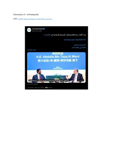 Publication: X – Al Khaleej Biz Link: تاراملإا# يف ةيحايسلا ةينيصلا تارامثتسلاا ةدايز تايلآ ثحب