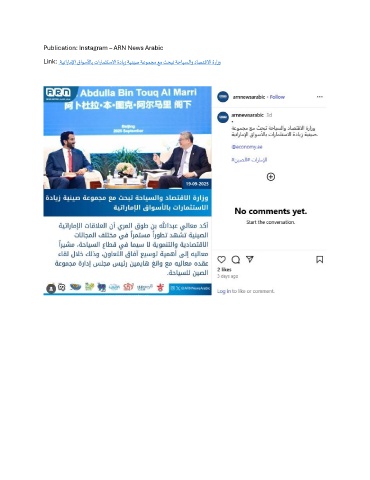 Publication: Instagram – ARN News Arabic Link: .ةيتاراملإا قاوسلأاب تارامثتسلاا ةدايز ةينيص ةعومجم عم ثحبت ةحايسلاو داصتقلاا ةرازو