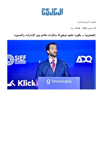 تارﺎﻣﻹا قاﻮﺳأ ,دﺎﺼﺘﻗا ءﺎﺴﻣ 16:38 2025 ﺮﺒﻤﺘﺒﺳ 19 «ﻦﻴﺼﻟاو تارﺎﻣﻹا ﻦﻴﺑ ﻢﻫﺎﻔﺗ تاﺮﻛﺬﻣ 4 ﻊﻴﻗﻮﺗ ﺪﻬﺸﺗ «ﻦﻴﺑ ‐ ﺎﻴﺑﻮﺘﺴﻔﻧإ