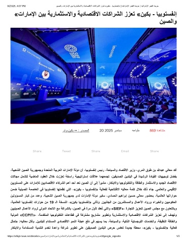 9/23/25, 4:07 PM نﯾﺻﻟاو تارﺎﻣﻹا نﯾﺑ ﺔﯾرﺎﻣﺛﺗﺳﻻاو ﺔﯾدﺎﺻﺗﻗﻻا تﺎﻛارﺷﻟا ززﻌﺗ «نﯾﻛﺑ - ﺎﯾﺑوﺗﺳﻔﻧإ» | ﮫﯾﺗارﺎﻣﻹا رﺟﻔﻟا ةدﯾرﺟ | ﮫﯾﺗارﺎﻣﻹا رﺟﻔﻟا ةدﯾرﺟ