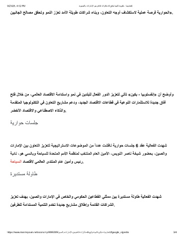 9/23/25, 4:12 PM «نﯾﺻﻟاو تارﺎﻣﻹا نﯾﺑ مھﺎﻔﺗ تارﻛذﻣ 4 ﻊﯾﻗوﺗ دﮭﺷﺗ «نﯾﻛﺑ - ﺎﯾﺑوﺗﺳﻔﻧإ