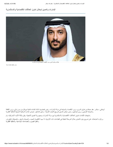 https://www.mubasher.info/news/4499669/ﺔﯾرﺎﻣﺛﺗﺳﻻاو-ﺔﯾدﺎﺻﺗﻗﻻا-تﺎﻗﻼﻌﻟا-زﯾزﻌﺗ-نﺎﺛﺣﺑﺗ-نﯾﺻﻟاو-تارﺎﻣﻹا/?currentUserCountryCode=CN 1/2