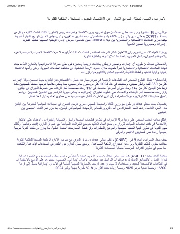 9/19/25, 1:58 PM ﺔﯾرﻛﻔﻟا ﺔﯾﻛﻠﻣﻟاو ﺔﺣﺎﯾﺳﻟاو دﯾدﺟﻟا دﺎﺻﺗﻗﻻا ﻲﻓ نوﺎﻌﺗﻟا ﻊﯾرﺳﺗ نﺎﺛﺣﺑﺗ نﯾﺻﻟاو تارﺎﻣﻹا - Fana News