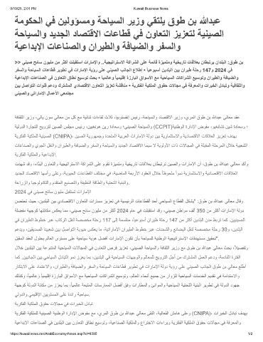 رﻔﺳﻟاو ﺔﺣﺎﯾﺳﻟا تﺎﻋﺎطﻗ رﯾوطﺗ ﻲﻓ تارﺎﻣﻹا ﺔﯾؤر ﻰﻠﻋ ﻲﻧﯾﺻﻟا بﻧﺎﺟﻟا عﻼطإ • ًﺎﯾﻋوﺑﺳأ نﯾدﻠﺑﻟا نﯾﺑ نارﯾط ﺔﻠﺣر 147و 2024 ﻲﻓ