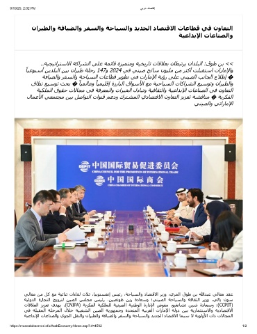 ﺔﻓﺎﯿﻀﻟاو ﺮﻔﺴﻟاو ﺔﺣﺎﯿﺴﻟا تﺎﻋﺎﻄﻗ ﺮﻳﻮﻄﺗ ﻲﻓ تارﺎﻣﻹا ﺔﻳؤر ﻰﻠﻋ ﻲﻨﯿﺼﻟا ﺐﻧﺎﺠﻟا عﻼطإ �