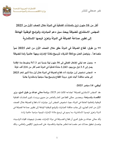 .ةدﺌار ﺔﯿﻤﻟﺎﻋ ﺔﯿﺤﺎﯿﺴ ﺔﻬﺠوﻛ تارﺎﻤﻹا ﺔﻨﺎﻛﻤ ﺦﯿﺴرﺘ ﻲﻓ مﻬﺴﯿ ﺎﻤﺒ ،ﺔﯿرﺎﻤﺜﺘﺴﻻا ﺎﻬﺼرﻓ زﯿزﻌﺘو ﺔﻟودﻟا
