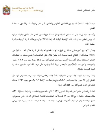لﺎﻐـــﺸﻹا ﻲﻟﺎﯿﻟ ددﻋ ﻊﻔﺘرا ثﯿﺤ ،ﺔﻟودﻟا ﻲﻓ ﺔﻓﺎﯿـــﻀﻟا عﺎطﻘﻟ ءادﻷا ﺞﺌﺎﺘﻨ ضارﻌﺘـــﺴا عﺎﻤﺘﺠﻻا دﻬـــﺸ ،ً ﻼﯿـــﺼﻔﺘو