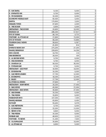 X - UAE NEWS ARABIC 17,700 12,000 2