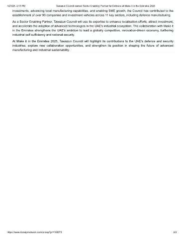 4/23/25, 2:13 PM Tawazun Council named Sector Enabling Partner for Defence at Make it in the Emirates 2025