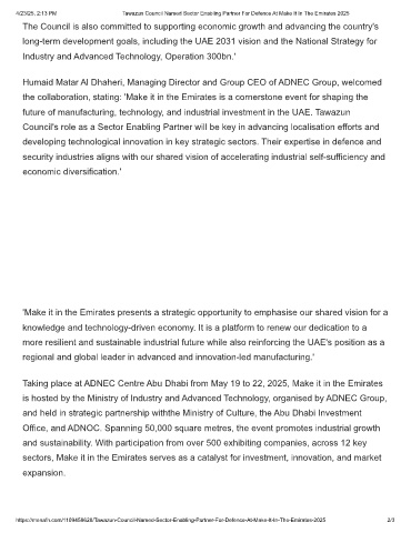 4/23/25, 2:13 PM Tawazun Council Named Sector Enabling Partner For Defence At Make It In The Emirates 2025