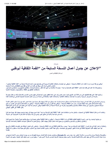 4/16/25, 11:59 AM 24 تارﺎﻣﻹا « ”ﻲﺑظوﺑأ ﺔﯾﻓﺎﻘﺛﻟا ﺔﻣﻘﻟا“ نﻣ ﺔﻌﺑﺎﺳﻟا ﺔﺧﺳﻧﻟا لﺎﻣﻋأ لودﺟ نﻋ نﻼﻋﻹا