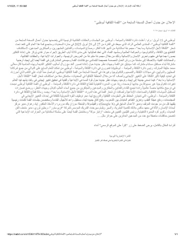4/16/25, 11:59 AM ﻲﺑظوﺑأ ﺔﯾﻓﺎﻘﺛﻟا ﺔﻣﻘﻟا“ نﻣ ﺔﻌﺑﺎﺳﻟا ﺔﺧﺳﻧﻟا لﺎﻣﻋأ لودﺟ نﻋ نﻼﻋﻹا | تارﺎﻣﻹا ءﺎﺑﻧأ ﺔﻟﺎﻛو”