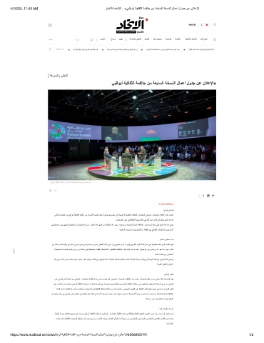 4/16/25, 11:59 AM رﺎﺑﺧﻸﻟ دﺎﺣﺗﻻا - «ﻲﺑظوﺑأ ﺔﯾﻓﺎﻘﺛﻟا ﺔﻣﻘﻟا» نﻣ ﺔﻌﺑﺎﺳﻟا ﺔﺧﺳﻧﻟا لﺎﻣﻋأ لودﺟ نﻋ نﻼﻋﻹا