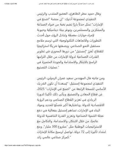 4/16/25, 12:03 PM ﻲﻋﺎﻧﺻﻟا رﺎﻛﺗﺑﻻا ﺔﻠﺟﻋ ﻊﻓدﻟ ندﺎﻌﻣﻟا عﺎطﻘﻟ كﯾرﺷﻛ "2025 تارﺎﻣﻹا ﻲﻓ ﻊﻧﺻا" ﻰﻟإ مﺿﻧﺗ "لﯾﺗﺳﻣإ" :برﻌﻟا ىدﺻ