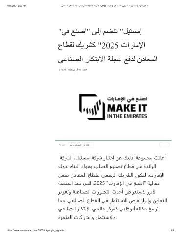 4/16/25, 12:03 PM ﻲﻋﺎﻧﺻﻟا رﺎﻛﺗﺑﻻا ﺔﻠﺟﻋ ﻊﻓدﻟ ندﺎﻌﻣﻟا عﺎطﻘﻟ كﯾرﺷﻛ "2025 تارﺎﻣﻹا ﻲﻓ ﻊﻧﺻا" ﻰﻟإ مﺿﻧﺗ "لﯾﺗﺳﻣإ" :برﻌﻟا ىدﺻ